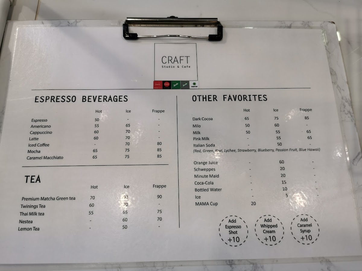 Craft Studio & Cafe Menu